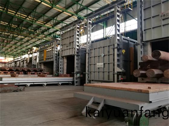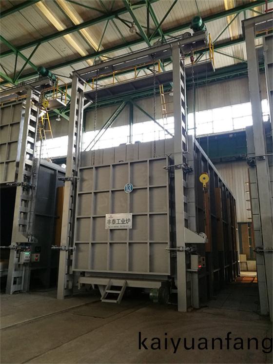 台车炉为长方箱形结构,承重平台为可移动小车,工件堆放在工作台上,进出电动传动,炉门上下开关,电动控制;炉衬采用全纤维硅酸铝甩丝毯制成模块筑成炉体,炉底采用轻质保温砖和重质耐火砖砌筑,加热元件采用电阻丝和电阻带加热,炉体外壳采用钢板和型钢制作,炉门、台车采用机械传动;具体配置按客户和炉温要求设计配备。