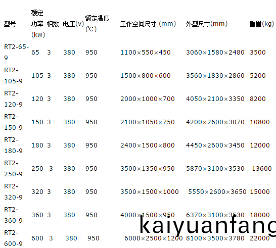 常规炉规格尺寸:(尽供参考,主要工作尺寸有用户自定)